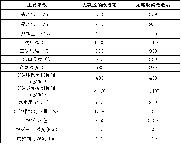 主要參數無氨脫硝改造前無氨脫硝改造后