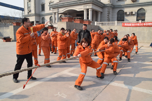 3月8日下午,贊皇金隅工會舉辦了“踐行干事文化 爭當巾幗標兵”女職工拔河比賽。來自生產、職能管理部門與深州冀東公司等4支參賽隊50余名隊員及拉拉隊員組織有序的參加了比賽,每支參賽隊由9名隊員組成。公司經理孫建勛、黨委書記常延輝等領導出席活動,并為參賽隊吶喊加油。