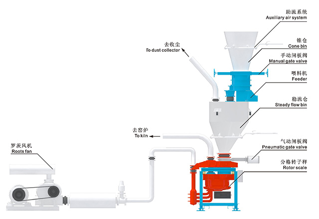 菲斯特形式轉子秤把傳統的煤粉定量喂煤、計量和鎖風功能集成到一臺裝置中,專用于采用氣力輸送煤粉的定量喂煤。該系統噪音小、結構緊湊、維護方便,已廣泛應用于全球水泥行業的定量喂煤。