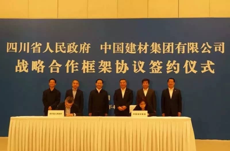中國建材集團集團總會計師徐衛兵和四川省副省長朱鶴新代表雙方簽字。集團紀委書記楊杰,四川省委常委、成都市委書記范銳平出席儀式。