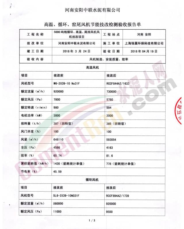 隨著水泥行業競爭越來越激烈,為降低生產成本,中聯水泥河南區域公司與上海瑞晨深度合作,開展熟料線五大風機節能技改工作。通過提升風機自身性能,整改系統中存在的不利因素,量身定制高效節能風機,提升風機運行效率,減少無效耗能,達到最佳節能效果。