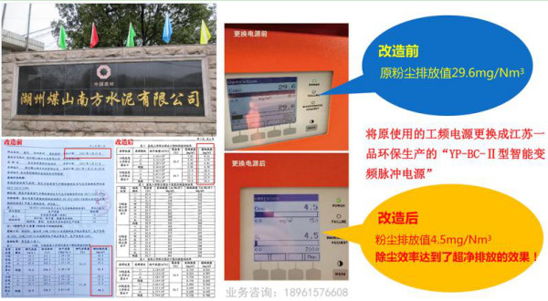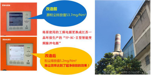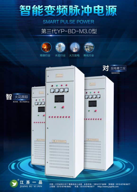 在確定選用電改電方案前,我們對除塵電源進行了專項考察,查閱了國內(nèi)外先進的除塵電源技術(shù),考察了國內(nèi)多家除塵電源生產(chǎn)企業(yè),經(jīng)技術(shù)專業(yè)比較,多方論證,最終選擇了由江蘇一品環(huán)保研發(fā)生產(chǎn)的與國外先進除塵電源技術(shù)同步的“YP-BD-M型智能變頻脈沖電源”。
