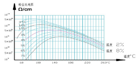 電除塵器工作適宜的粉塵比電阻范圍是10^4-10^11Ω.cm,而窯頭余熱利用鍋爐投運之后,煙氣溫度從200℃以上降至90~130℃,粉塵比電阻從<10^11Ω·cm上升到>10^12Ω·cm,如附圖,煙氣溫度在90~130℃范圍內(nèi),粉塵比電阻正處于極大值附近,只有適當(dāng)增加煙氣中的濕度,使得粉塵比電阻降低到合適的范圍,除塵效率才能相應(yīng)提高。