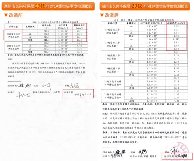 湖州槐坎南方水泥改造前后數(shù)據(jù)對比
