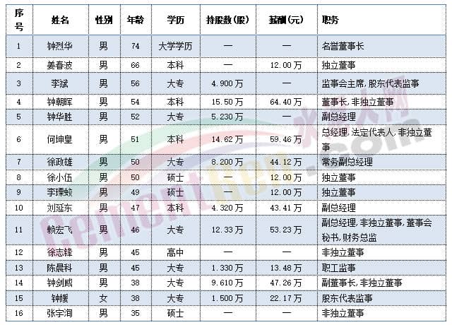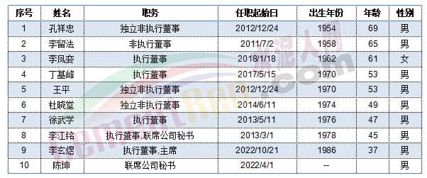 尖峰集團職工代表秦旭平、戴錦孝今年60歲,董事長蔣曉萌、副總經(jīng)理項崇平、獨立董事楊大龍今年59歲,副總經(jīng)理黃金龍今年58歲。