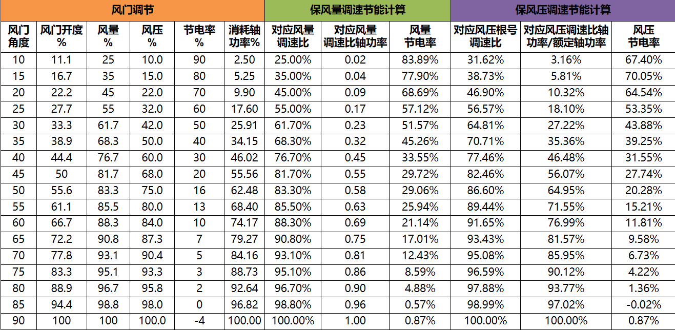 相較于工頻轉(zhuǎn)速,65度風(fēng)門開度節(jié)電率約為15.5%。