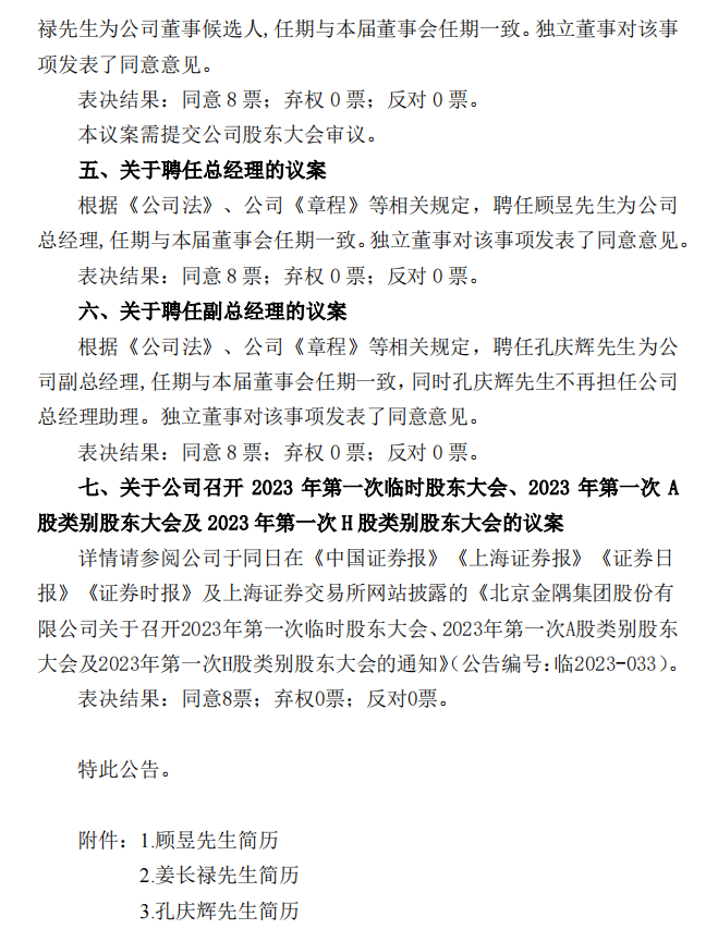 同期選舉劉燕先生擔(dān)任公司第八屆董事會董事長。同意調(diào)整劉燕先生為公司董事會環(huán)境、社會及管治(ESG)委員會、戰(zhàn)略委員會主任委員。同期聘任何小龍先生為公司副總裁。
