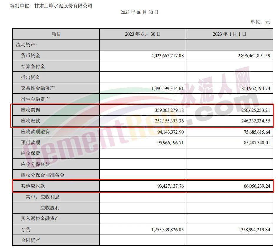 2023年上半年祁連山應收賬款4.43億,其他應收款384.2萬。