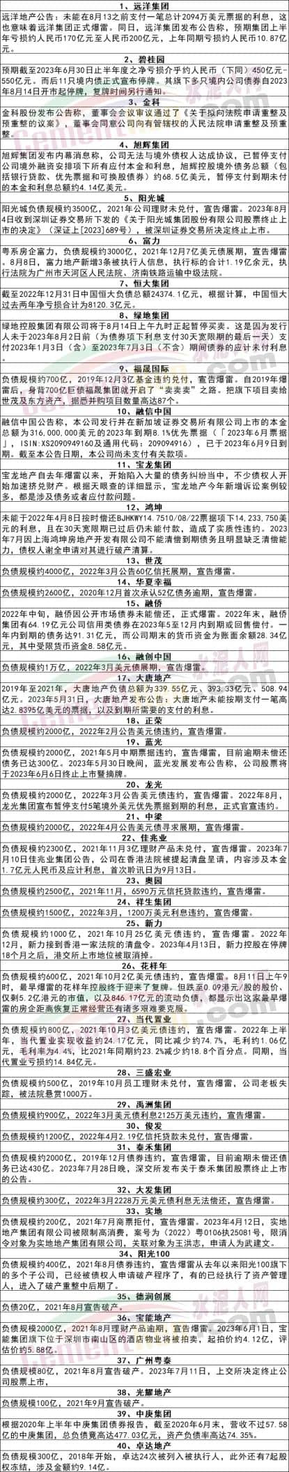 據水泥人網不完全統計,目前已有40多家龍頭房企已經宣布違約爆雷,甚至停牌退市,遠洋集團未支付美元票據利息、碧桂園11只境內債正式停牌、陽光城理財未兌付、綠地集團未支付債券應付利息、世茂集團60億信托展期、正榮美元債違約、藍光票據違約、花樣年美元債違約……他們欠下的賬款和未付的商票又該如何處置呢?