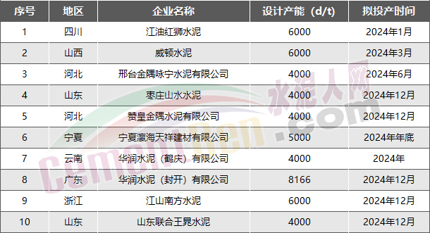 據不完全統計,2020年,全國各地工信部門公示和公告的產能置換方案共有46個,而2021年公布的全國擬建熟料項目共58個。從2021年至2025年底前將有37條5340.9萬噸/年。其中計劃于2022年投產熟料生產線共24條,盡管在2022年內有部分生產線出現緩建和停建現象,但是仍未阻止更多企業通過產能置換、技術改造拆舊建新的熱情。今年8月至2024年底,共有48條生產線將點火投產,總產能合計為7404萬噸/年。