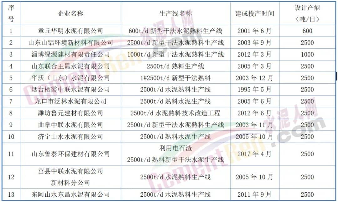 據了解,截至2022年12月31日山東省內共有85條熟料生產線,其中2500t/d及以下生產線13條,包含山東魯泰環保建材有限公司一條利用電石渣2500t/d熟料新型干法水泥生產線。
