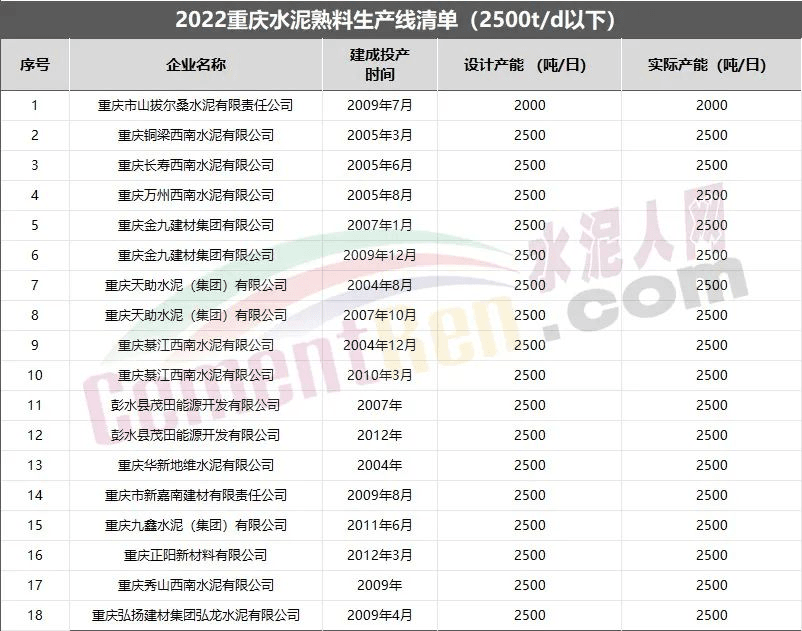 重慶市2025年底前退出單條生產線2500t/d及以下的普通水泥熟料產能