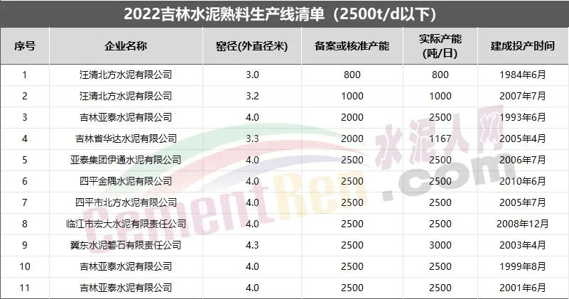 吉林要求2025年底前通過省內產能置換,逐步退出2500t/d以下熟料生產線