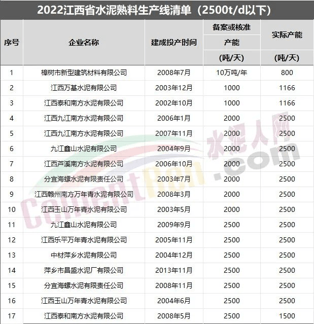 江西省2025年底前淘汰2000t/d及產能利用率較低的地區的2500t/d生產線
