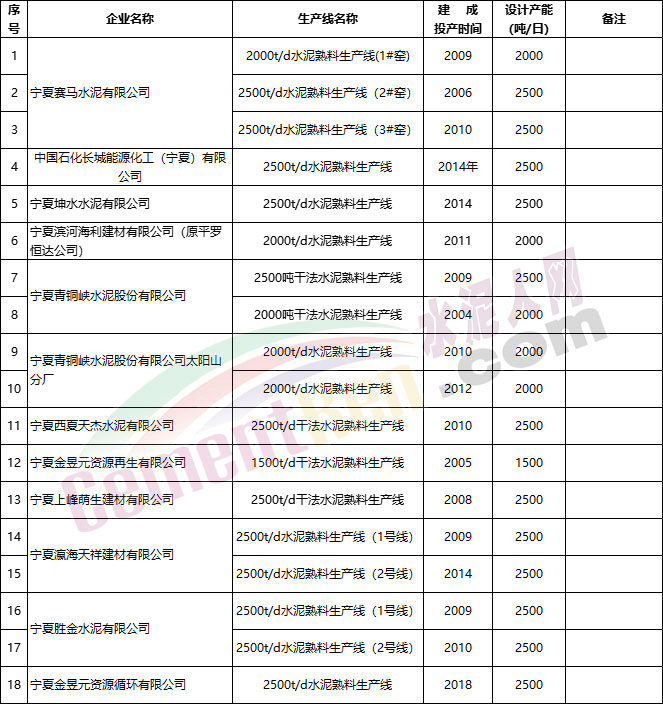 寧夏回族自治區2025年底前淘汰2500t/d水泥熟料生產線