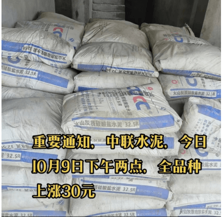 云南富源西南水泥有限公司通知,由于原煤價(jià)格上漲,造成生產(chǎn)成本增加,經(jīng)曲靖營銷中心經(jīng)營班子研究決定,自2023年10月10日零點(diǎn)各品種水泥上調(diào)20元/噸。