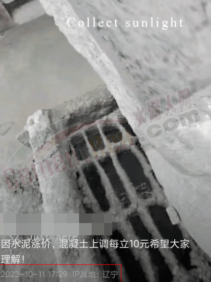 圖:遼寧某商混企業通知混凝土上調10元/方