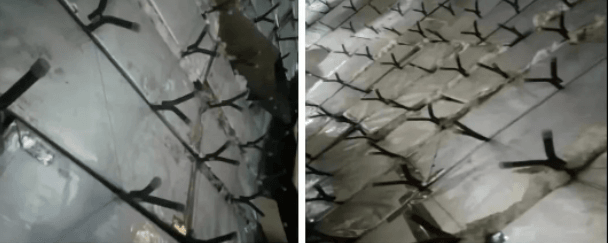 重慶開州水泥有限公司采用35mm950型納米隔熱板代替原有的100mm硅酸鈣板,擴大分解爐的內部容積。原來的耐火結構是114mm耐火磚和100mm硅酸鈣板,為了擴大內徑,原耐火磚114mm不變,采用35mm的納米隔熱板代替原來的100mm硅酸鈣板。
