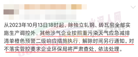 河北唐山區(qū)域通知,涉氣企業(yè)按照重污染天氣應(yīng)急減排清單橙色預(yù)警二級響應(yīng)措施執(zhí)行。