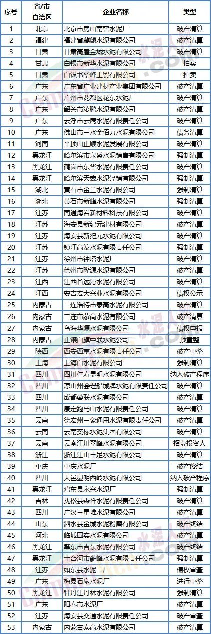 多個“行業一哥、行業茅、巨頭、龍頭”登上違約平臺,且多與房地產投資相關。而作為房企直接上游的供應商,水泥、商混、建筑企業正遭遇量價齊跌,業績下行的窘迫。今年上半年以來已經有1300多家建筑企業破產,就連“中國建筑鐵軍”也未能幸免;110多家水泥、混凝土及水泥制品企業破產,其中包括新建生產線不足3年的水泥工廠。