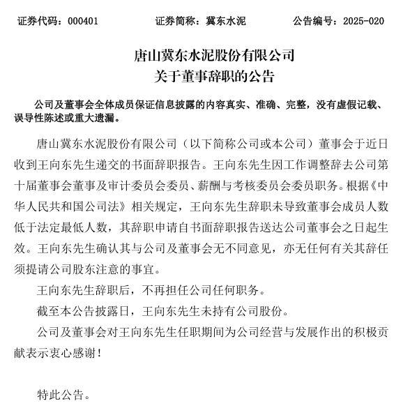 發布公告。王向東先生因工作調整辭去公司第十屆董事會董事及審計委員會委員、薪酬與考核委員會委員職務,不再擔任公司任何職務。