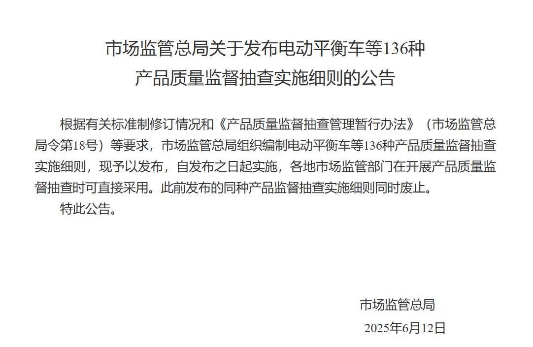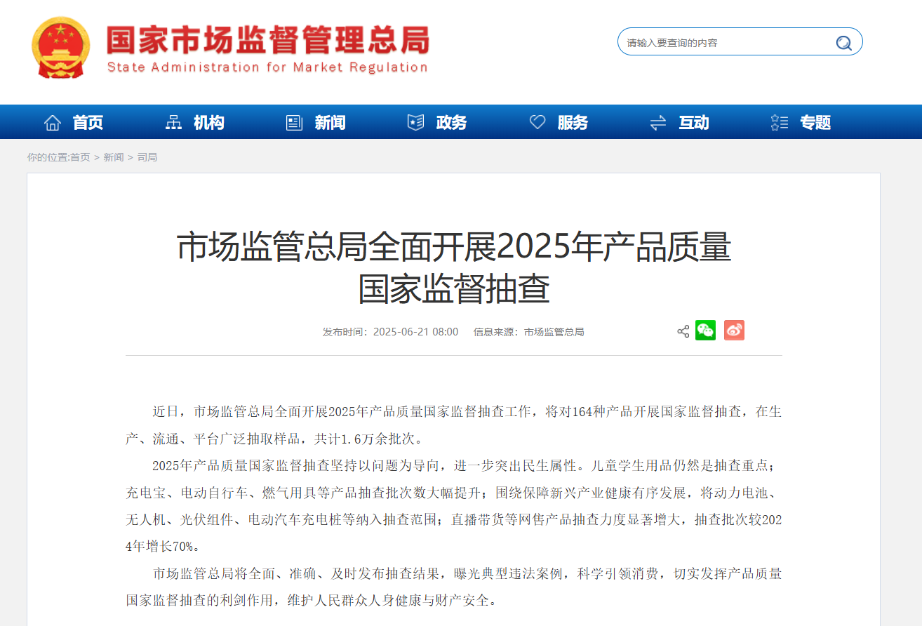 市場監管總局開啟2025年國抽!抽查新標準同步發布!