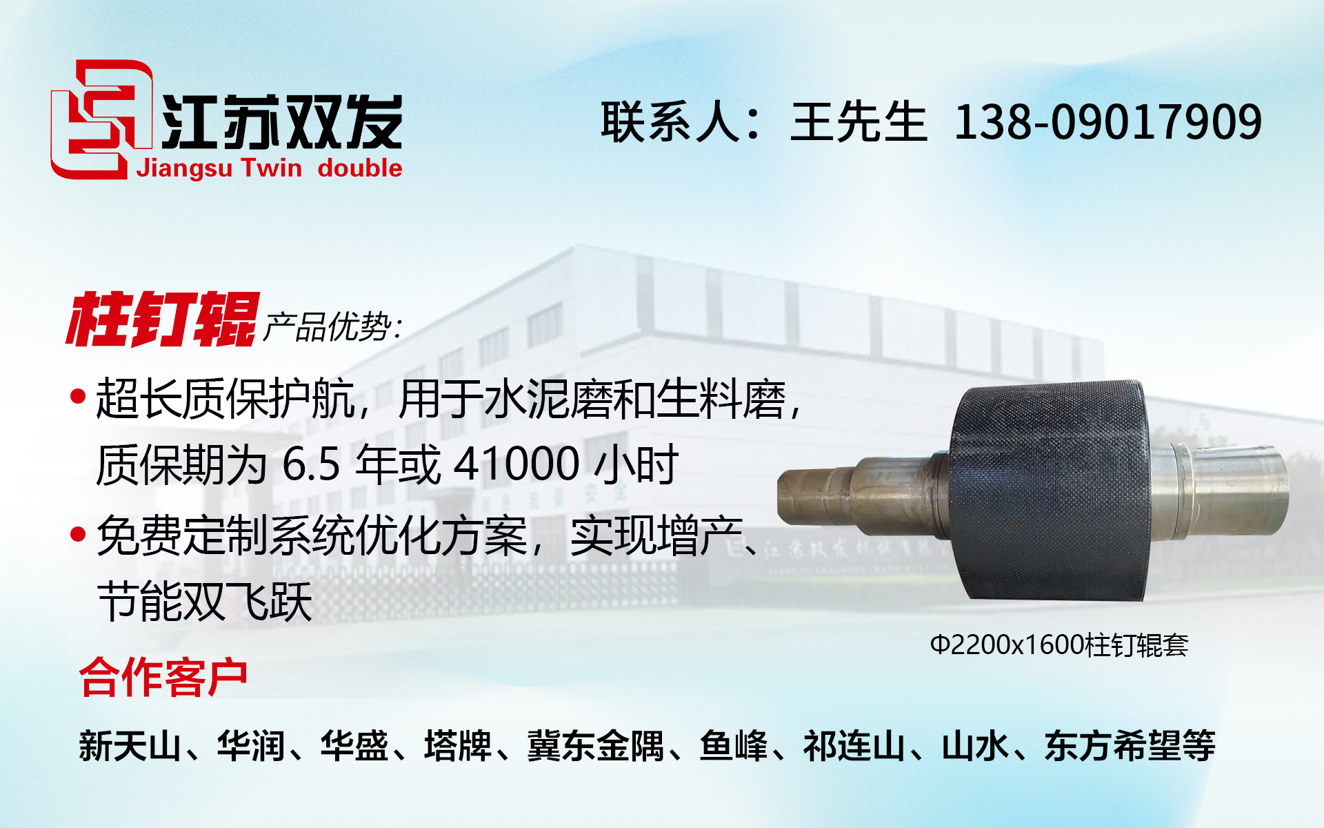 面對水泥行業的轉型升級需求,江蘇雙發以技術創新為引擎,通過超長質保柱釘輥套與系統性節能方案,助力企業降本增效,推動行業綠色高質量發展。未來,江蘇雙發將繼續深耕耐磨領域,為水泥企業提供更高效、更耐用的解決方案。
